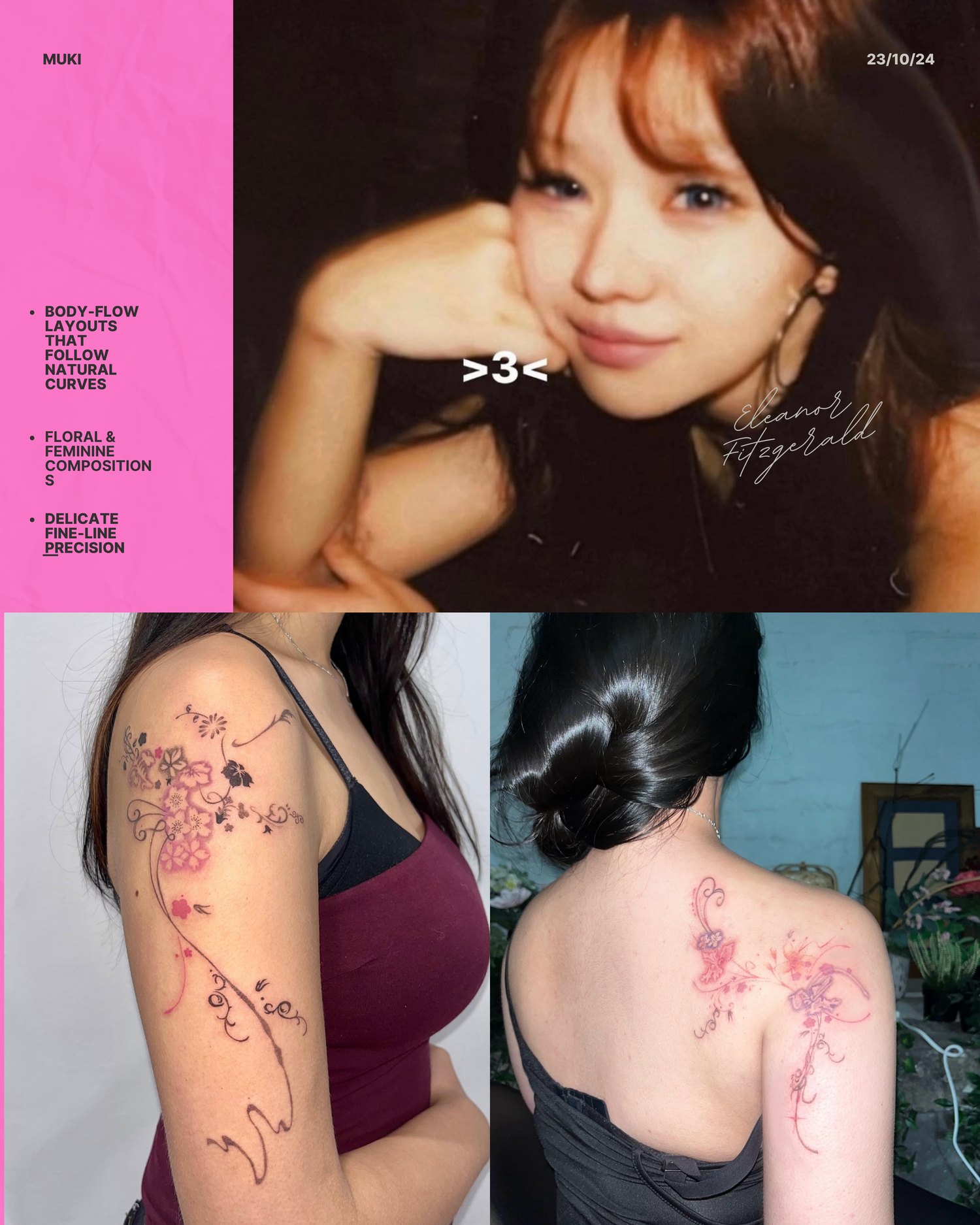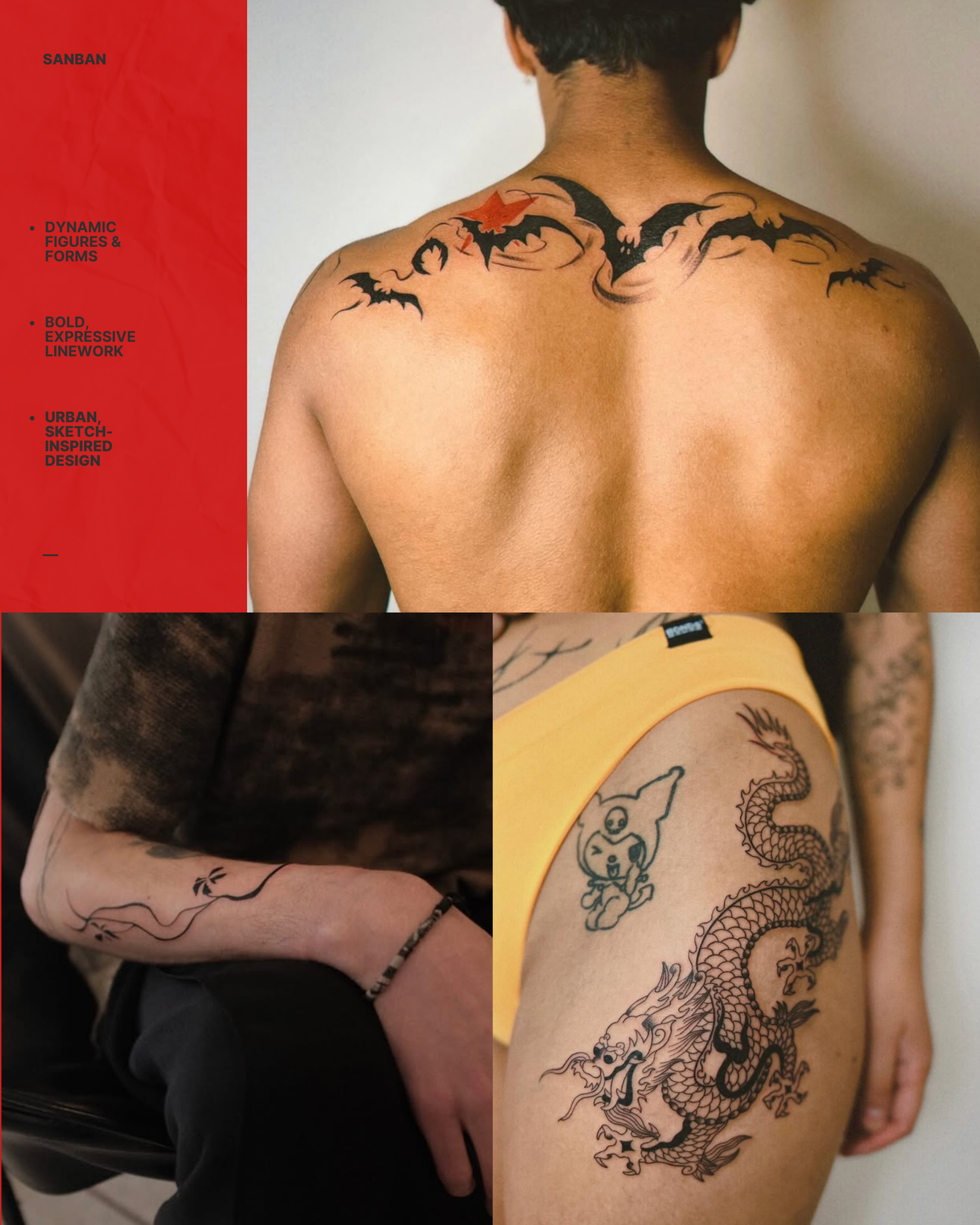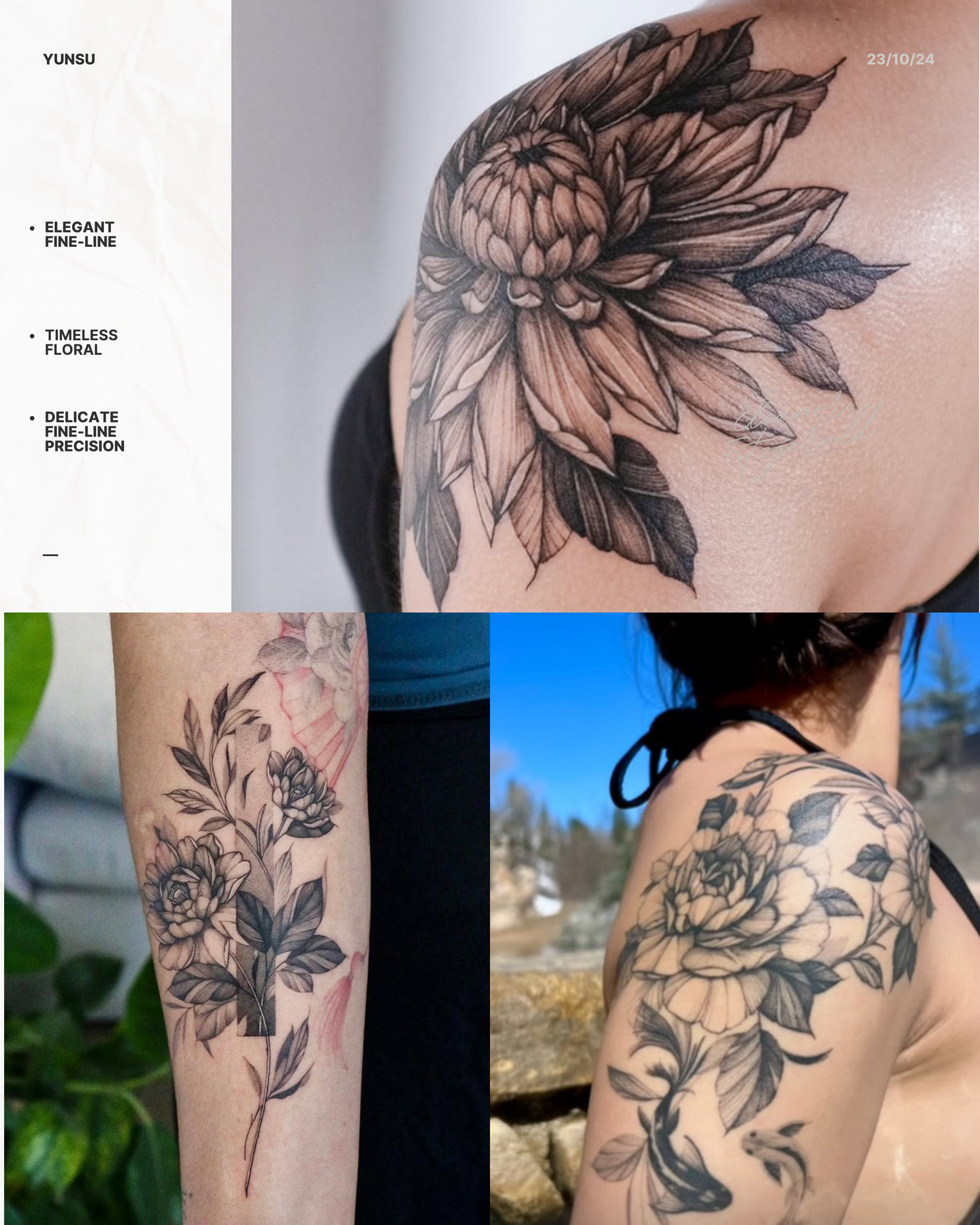 - 1000+ custom tattoos completed across a range of styles, from fine-line to large-scale illustrative work