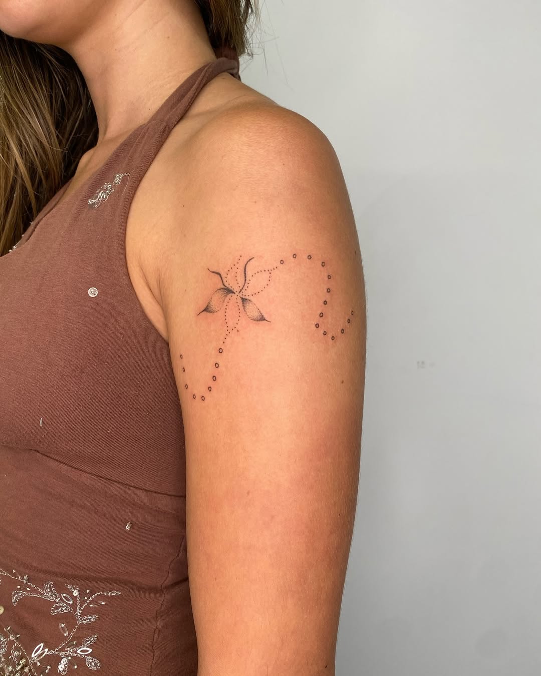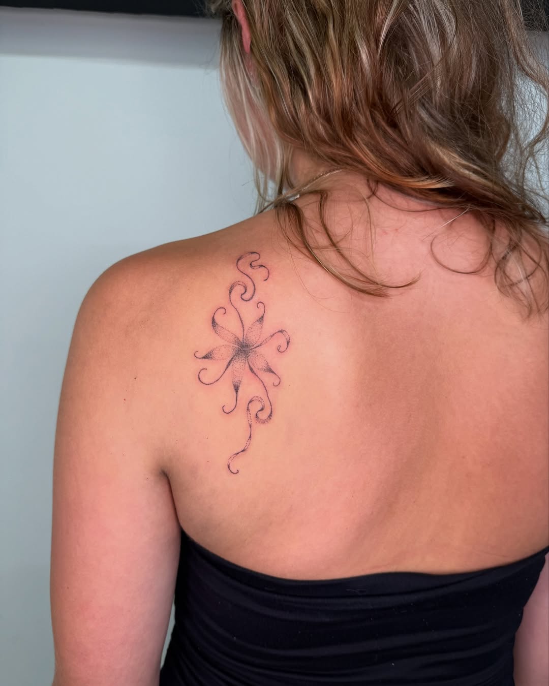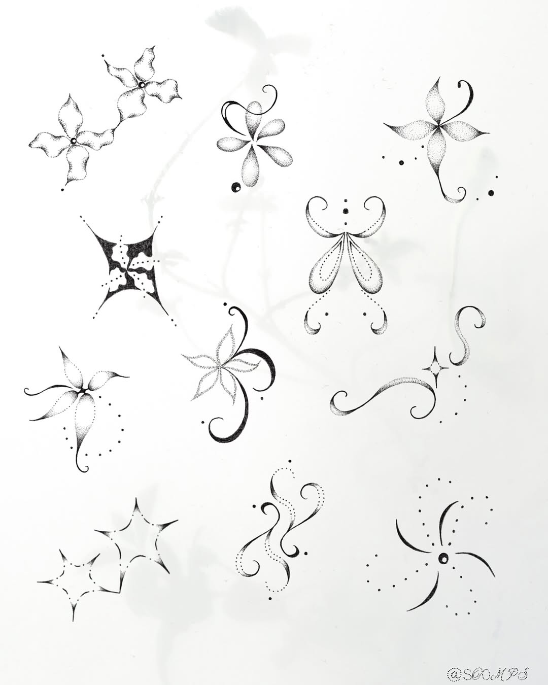 Soomin is a hand-poke tattoo artist known for her delicate, ornamental fine-line work. Her designs often resemble abstract florals and flowing patterns, built dot by dot with a meditative precision that gives each piece a soft, personal feel. Using the traditional stick-and-poke method, Soomin creates tattoos that look like jewellery for the skin — minimal, intimate, and timeless.