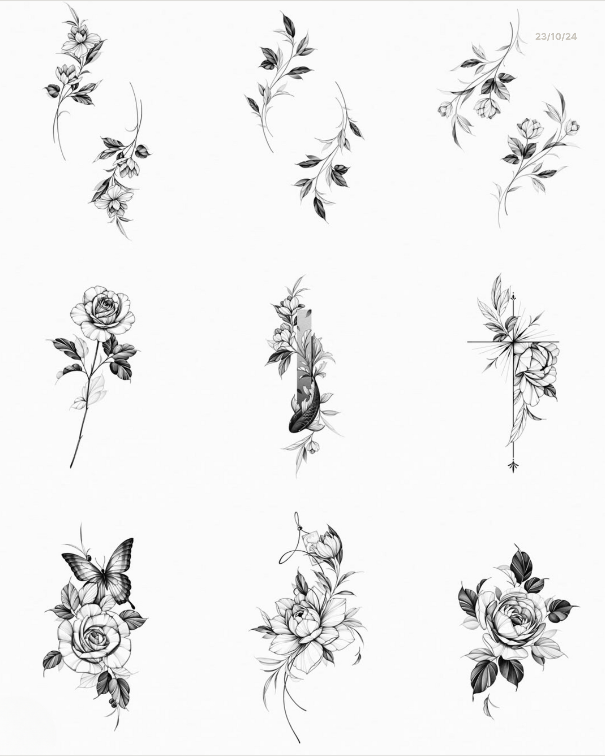 Experience Yunsu’s signature touch: floral fine-line black ink accented with crisp white highlights, crafted with meticulous care. Select bookings now open.