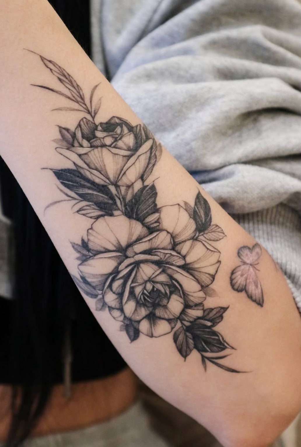 Experience Yunsu’s refined artistry – floral fine-line blackwork accented with delicate white highlights, crafted with precise, graceful detail. Select bookings now open.